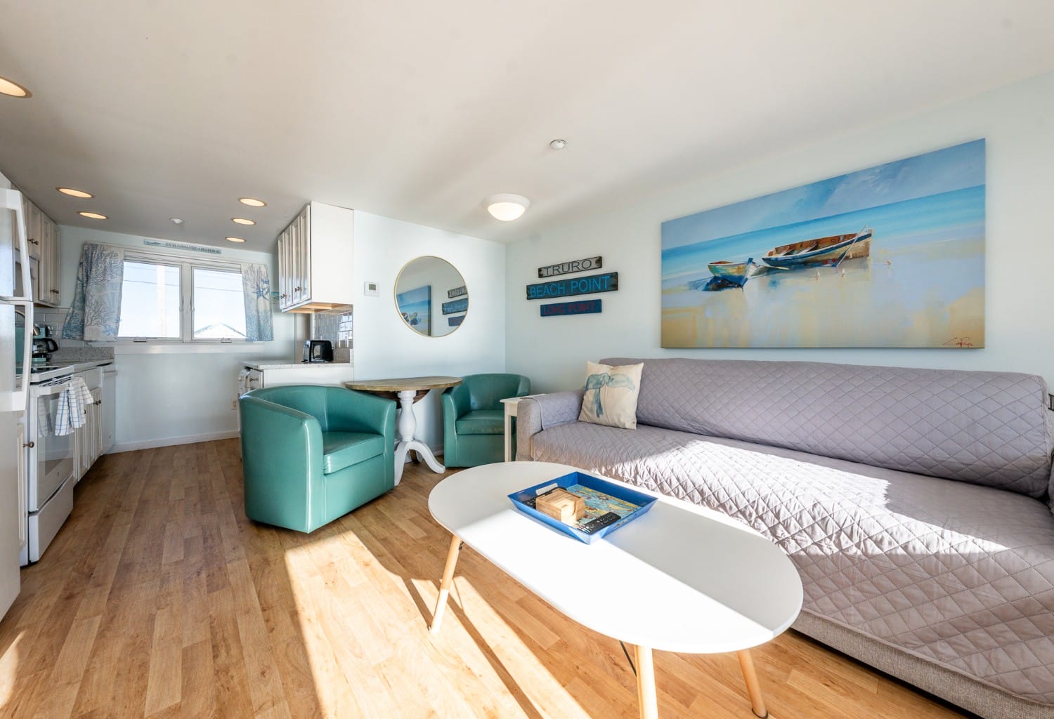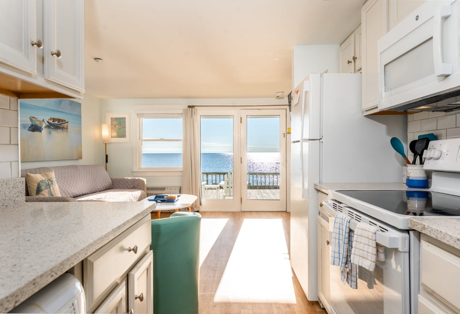 We will exchange towels and remove trash daily. All our suites are very well stocked and our bedding is of very high quality. All suites are air-conditioned and have gas fireplaces. And YES every suite has unobstructed ocean views!