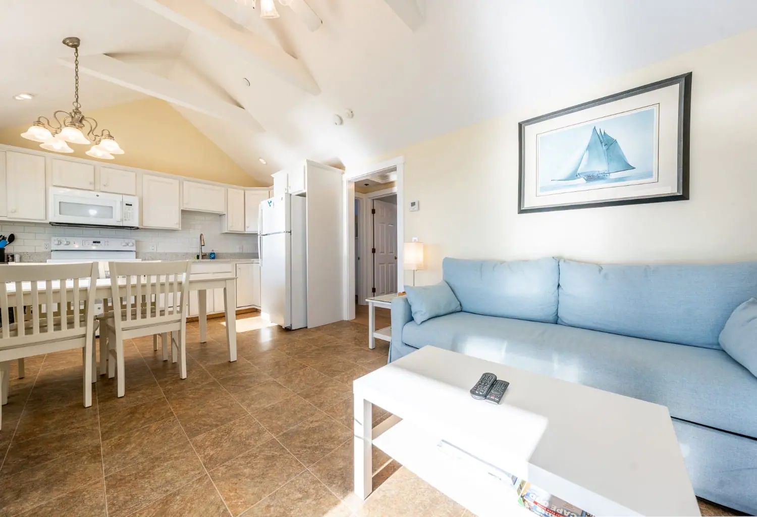 Our Two Bedroom 2-Full bath Suites are perfect for up to 8 people. We offer 3 types of Two Bedroom suites: Our standard (sleeps up to 6) includes 2 Twin Beds in one bedroom and a Queen in the other, one with its own private bath, additionally there is queen sleep-sofa in the living area. Our Oversized Two Bedroom Suite (sleeps up to 8) and is similar to the standard with a slightly larger living area with one bedroom capable of sleeping 4 people for a total of 8 in all. Finally, our Two Bedroom End Units (sleep up to 6) are similar to the standard style but are located at the ends of the building.