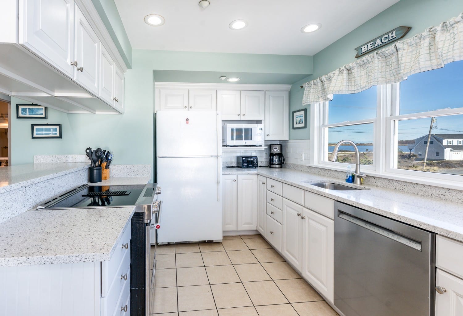 We supply coffee maker, toaster, blender, telephone, Cable TV with HBO, DVD, pots, pans, utensils, other kitchen supplies, lobster pot, plates, glasses, silverware, iron & ironing board, hair dryer, toilet paper, dishwashing liquid, washing machine liquids, all bedding with sheets and blankets as well as all bath towels.